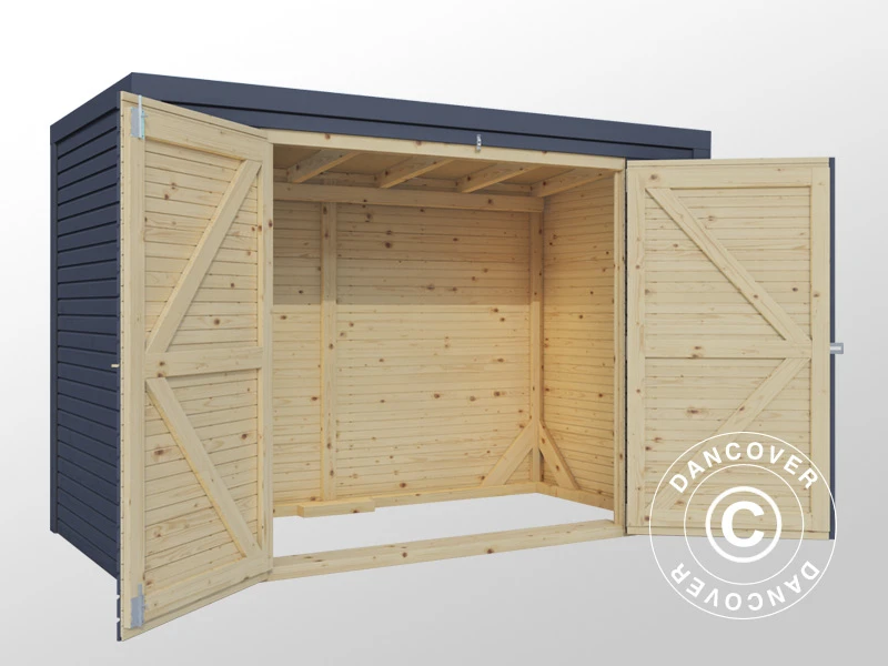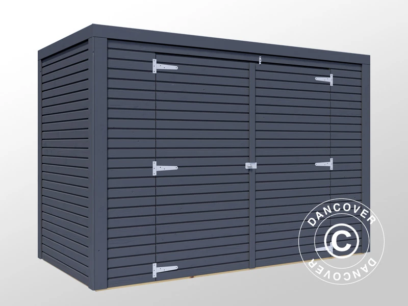 Abri en bois en épicéa nordique de 18 mm avec de larges doubles portes pour fournir un accès facile. Parfait pour des vélos, machines de jardin, poubelles et bien plus. L’abri a un verrou incrusté pour sécuriser le contenu. Le design en panneau moderne rend l’abri beau et il peut être placé presque partout ou vous avez besoin d’extra rangement. Pour prolonger la vie de votre bois, vous pouvez traiter l’intérieur avec une lasure à bois respirante. Enfin, nous vous recommandons d’utiliser du feutre de toiture sur le dessus de l’abri après l’assemblage pour rendre l’abri étanche. NB : Le feutre de toiture n’est PAS inclus!