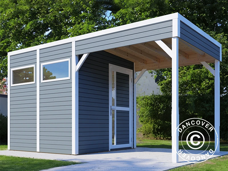 Un abri en bois élégant et moderne en bois massif 19 mm FSC de sources responsables. L’abri est fait de bois très stable, robuste et durable, qui durera longtemps, surtout si vous en prenez soin. L’abri en bois a un toit avec une pente de 2,2° afin que l’eau ne stagne pas. L’abri est livré avec un revêtements de toit temporaire, il est donc important que vous installiez des feutres ou des bardeaux de toiture permanents dans les quelques semaines suivant l’assemblage.