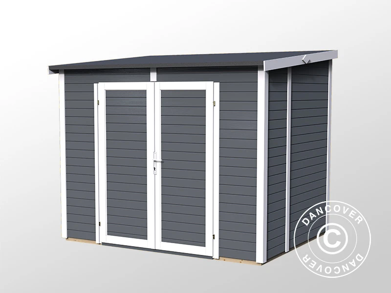 Abri en bois en épicéa nordique (Picea Abies) de 19 mm avec une grande porte à double battant pour faciliter l’accès. Parfait pour les outils de jardinage, les petites machines de jardinage, et bien plus encore. L’abri peut être verrouillé avec la serrure cylindrique intégrée. Le design moderne des panneaux donne à l’abri une belle apparence et il peut être placé plus ou moins partout où vous avez besoin de stockage supplémentaire. Tous les panneaux ont été recouverts d’une couche de base et d’une couche de finition durable avec une peinture à base d’eau fournie par le producteur scandinave NORDICA EKO/TEKNOS. Pour prolonger la durée de vie du bois, vous pouvez traiter l’intérieur avec une teinture pour bois respirante.