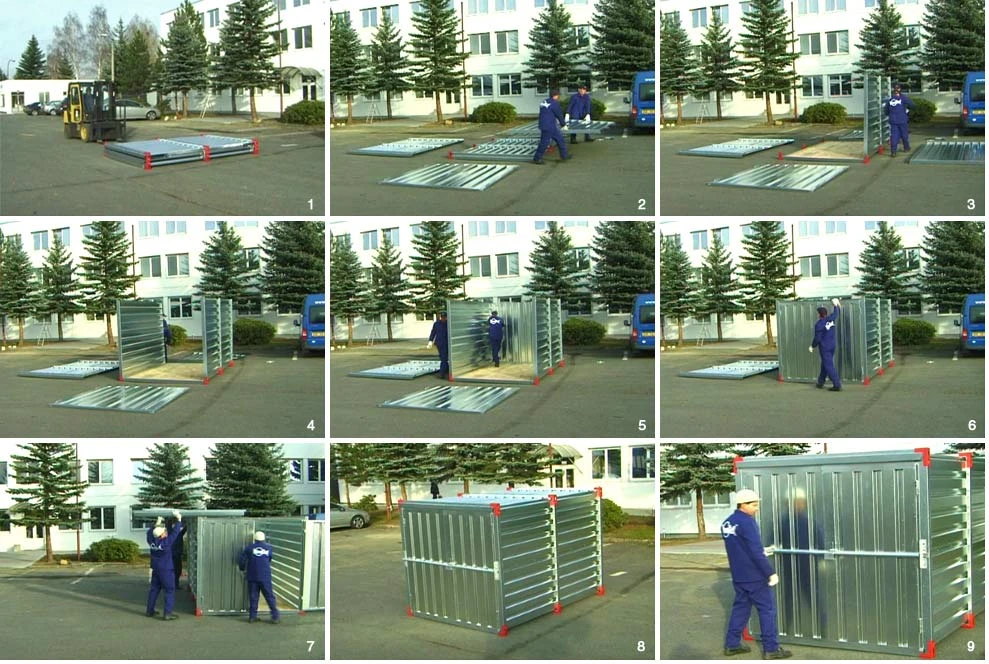 Le conteneur de rangement robuste et flexible est la solution idéale lorsque vous avez besoin d’un rangement sûr et flexible à l’extérieur ou à l’intérieur. Le conteneur peut être assemblé et démonté facilement à l’aide des boulons fournis. Cela signifie que vous pouvez toujours ajuster votre capacité de stockage en fonction de vos besoins d’espace de stockage. Les parois des conteneurs de stockage sont en acier galvanisé ondulé de 0,75 mm d’épaisseur. Les côtés sont rivetés sur un support en acier galvanisé de 2 mm et les angles sont en acier de 3 mm.