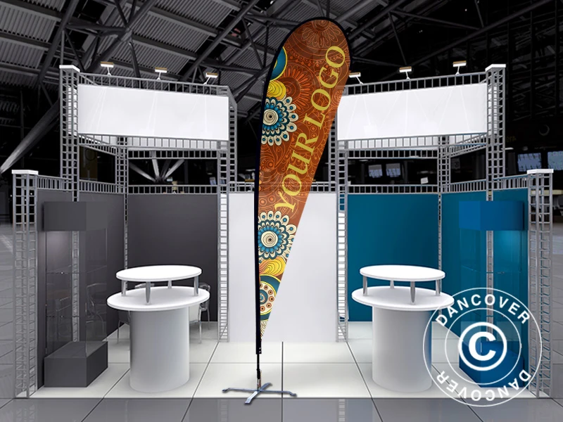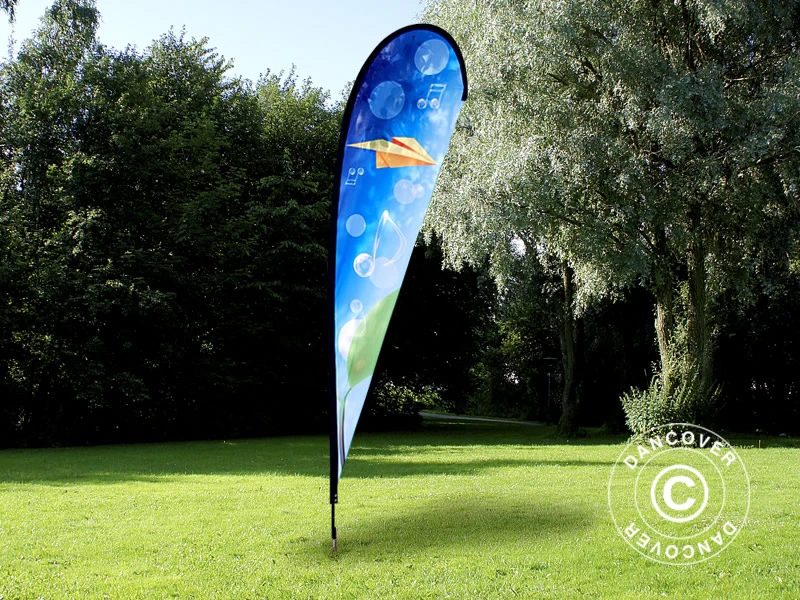 Les beach flag en forme de larme de Dancoverpermettent d’exposer de manière visible et accrocheuse votre logo ou un message. Le flag est extrêmement facile à monter avec son mât en fibre de verre de haute qualité