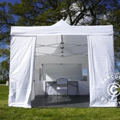 Tente Pour Visiteur FleXtents Steel 3x6m Blanc, Incl. 4 Parois Et 1 Paroi De Séparation Transparente