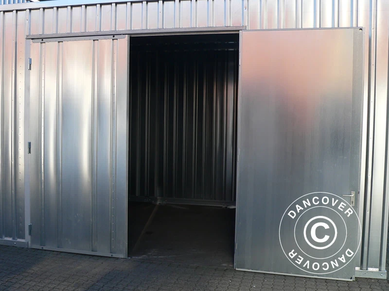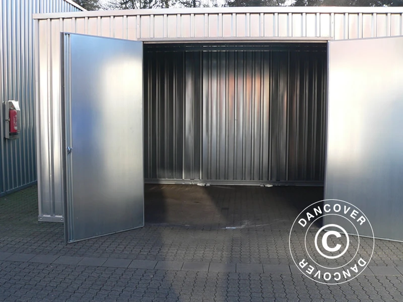 Hangar de stockage en acier pour toutes sortes de stockage pour les professionnels et autres personnes ayant besoin d’un grand entrepôt, spacieux et abordable en acier durable et solide. La solution de stockage parfaite et durable, que vous ayez besoin d’un espace supplémentaire pour un stockage permanent ou comme tampon pour les périodes où vous avez besoin d’un espace de stockage supplémentaire. Vous pouvez assembler le grand abri de stockage en quelques heures seulement si vous êtes deux ou plus pour vous aider à faire le travail. La grande porte à double battant permet d’accéder facilement à l’abri et offre une hauteur supplémentaire pour une utilisation en toute sécurité.