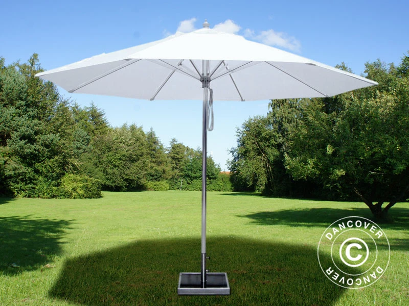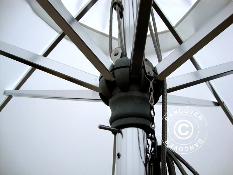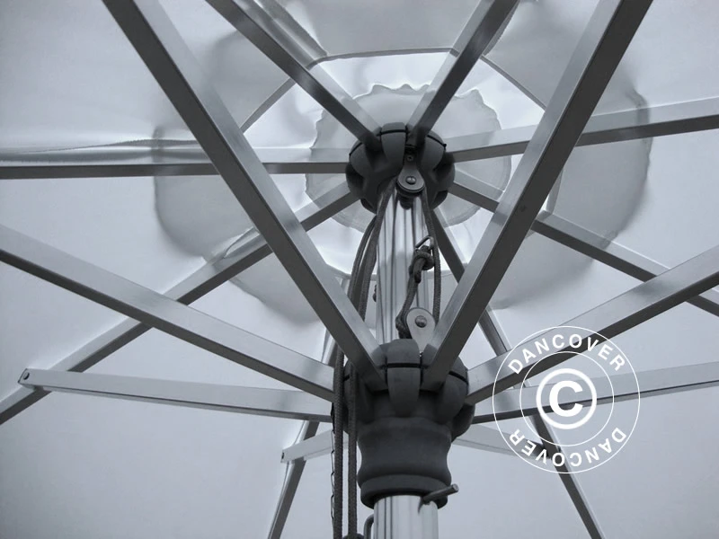 Parasol moderne et élégant dans des matériaux durables. Créez votre propre atmosphère d’île exotique et profitez de l’ombre agréable. Ce parasol de luxe de haute qualité est doté d’un cadre en aluminium robuste et d’un mât avec système de poulie facile à utiliser. La toile durable rend le parasol adapté à un usage résidentiel et commercial. Le beau design moderne sera magnifique sur n’importe quel patio ou dans n’importe quel restaurant et fournira un abri et ombre parfaite.