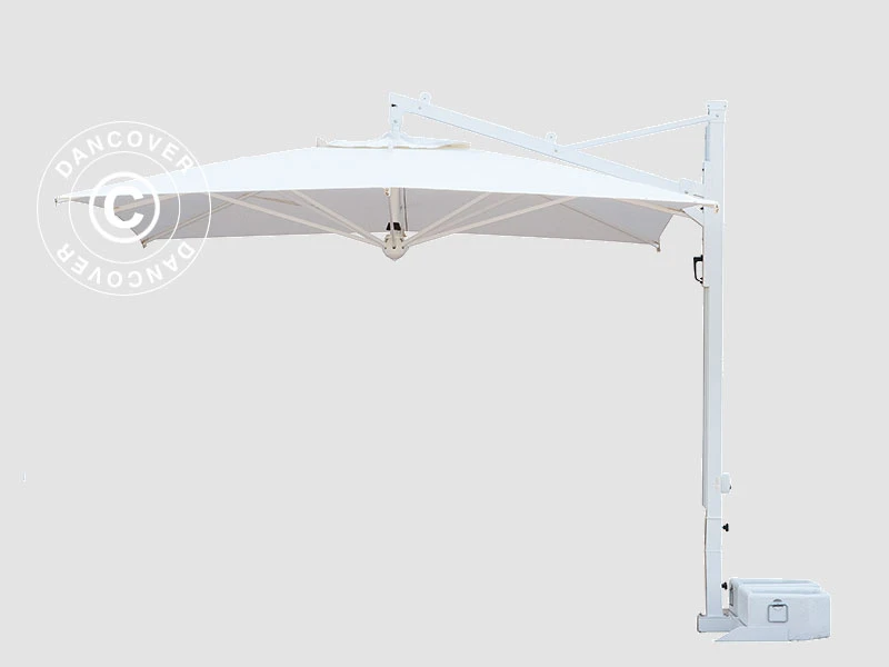 Un parasol en porte-à-faux très beau, exclusif et élégant d’une qualité professionnelle et dans un design moderne. Fera office de point de rassemblement naturel dans votre jardin ou patio, sur la terrasse de votre café ou autour de votre piscine. La poignée facile à utiliser rend le pliage et le dépliage du parasol possible sans avoir à bouger les tables et les chaises. Ce détail diffère grandement des autres parasols à porte-à-faux. Ce parasol présente une inclinaison jusqu’à 60°.