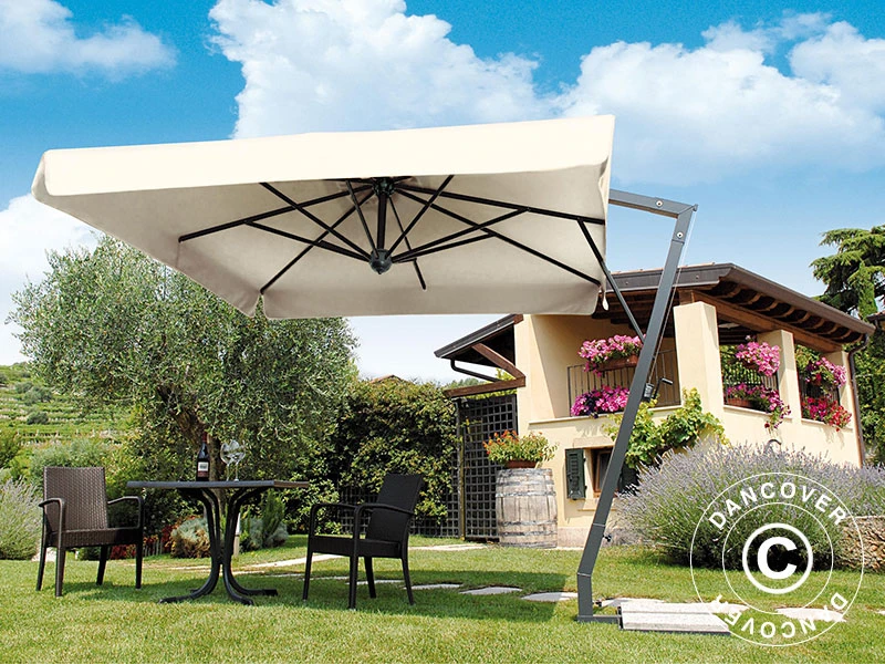 Un parasol en porte-à-faux très beau, exclusif et élégant d’une qualité professionnelle et dans un design moderne. Fera office de point de rassemblement naturel dans votre jardin ou patio, sur la terrasse de votre café ou autour de votre piscine.