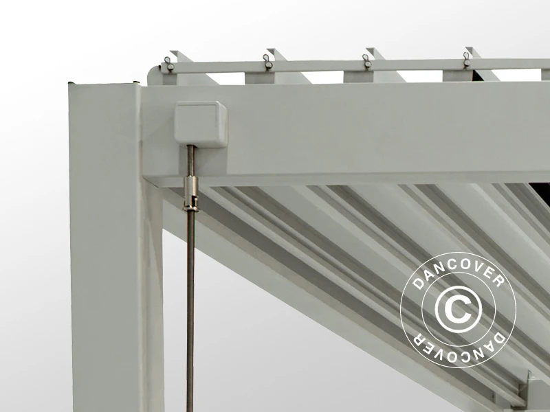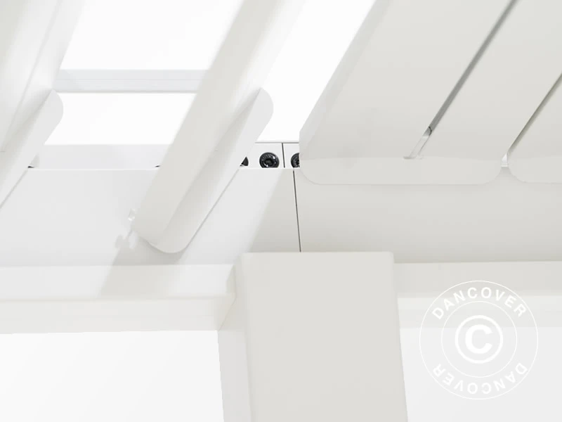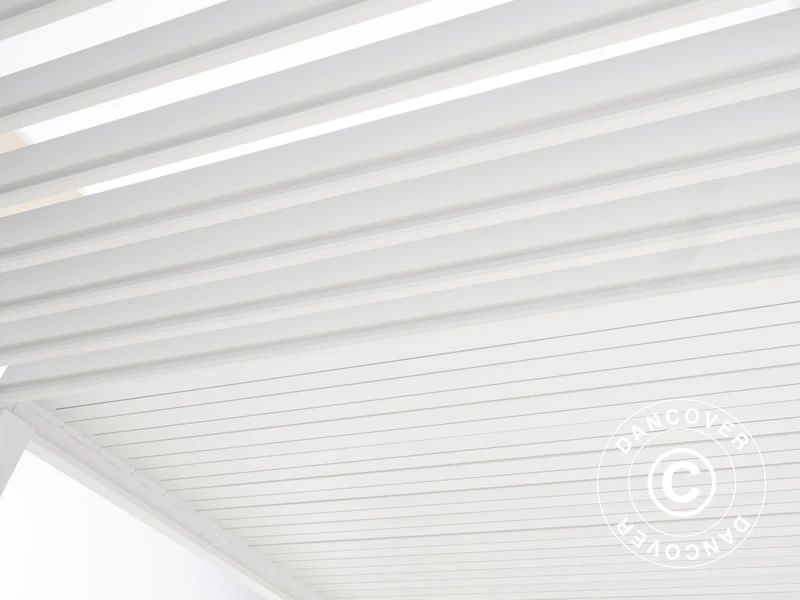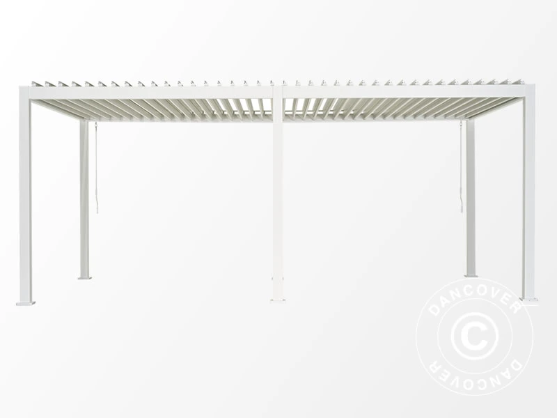 Cette tonnelle ou cette pergola bioclimatique haut de gamme aura un aspect étonnant dans la plupart des endroits — dans votre jardin, sur la terrasse, au bord d’une piscine, etc. L’aspect moderne et élégant s’adaptera partout, et vous pourrez l’utiliser aussi bien pour vous abriter de l’ombre que d’un peu de pluie. Vous pouvez ouvrir ou fermer le toit à lamelles innovant en utilisant les manivelles à l’intérieur de la tonnelle. Ouvrez les lamelles lorsque vous voulez profiter du soleil et refermez-les pour vous mettre à l’ombre ou vous abriter d’un peu de pluie. La tonnelle est étanche et résistante aux UV.