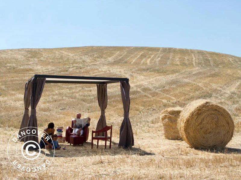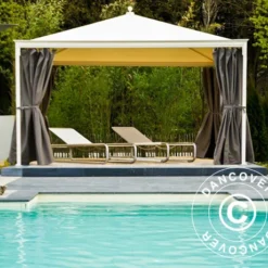- Informations sur la garantie: La garantie Dancover s’applique uniquement à l’utilisation normale du produit, à l’exception de l’usure normale, conformément aux instructions d’utilisation écrites ou au manuel. Si vous devez nettoyer votre tonnelle/pergola à un moment donné, utilisez uniquement un détergent doux et de l’eau tiède ou froide. N’utilisez pas d’agents forts, quels qu’ils soient.