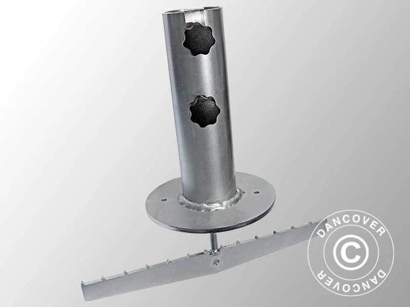 Ce pied de parasol avec ancre est la solution dont vous avez besoin. De plus, il vous épargne la perte d’espace d’un pied de parasol classique. Il en va ainsi car la plus grande partie du pied de parasol – l’ancre – est hors de portée, sous la table ou sous le bois de terrasse. Veuillez noter que la distance entre les planches sur le patio ou la table doit être de min. 8 mm pour que la vis de montage puisse s’adapter!