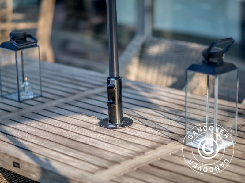 Vous souhaitez complètement fixer votre parasol dans votre table ou votre terrasse – nous avons ce qu’il vous faut.