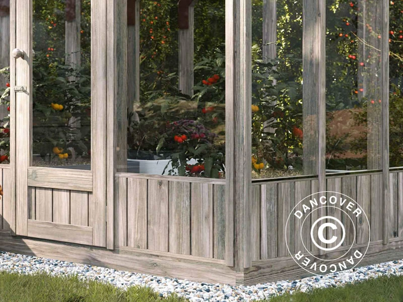 Une serre ou une tonnelle de jardin unique et exclusive en bois d’épicéa nordique traité sous pression. Les grandes vitres de la fenêtre offrent un incroyable apport de lumière, ce qui vous permet d’utiliser la structure comme une serre ou un refuge, selon vos envies. La belle structure se fondra dans votre jardin et vous offrira une pièce exquise pour vous détendre et cultiver de délicieux produits comme des fruits, des légumes et de belles fleurs.