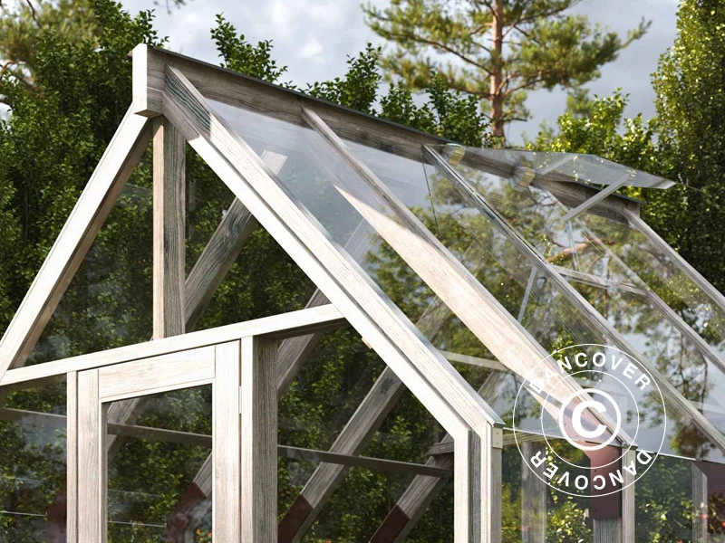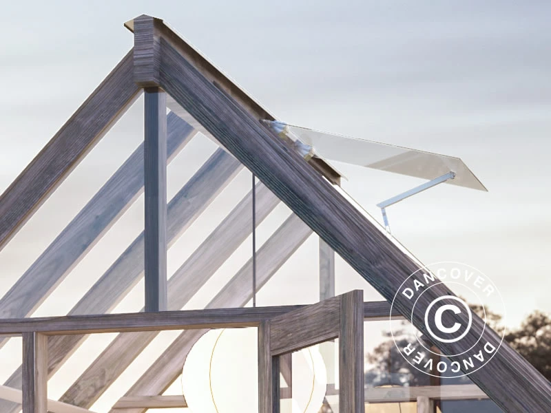Nous vous recommandons d’utiliser du silicone pour fixer les vitres des fenêtres, même si cela n’est pas indiqué dans votre manuel. Le silicone scellera les fenêtres et les fera rester en place. - Contrôle régulier et sécurité: Veuillez noter que même si nos serres et orangeries sont des structures solides et durables, elles ne sont pas des bâtiments permanents en tant que tels. Il vous incombe donc de contrôler régulièrement la structure pour vous assurer qu’elle est sûre et en bon état. Une serre est une construction solide, mais légère. Il est donc de votre responsabilité de vous assurer que la serre est bien fixée et attachée à la base afin que la serre ne cause pas de dommages à autrui en cas de mauvais temps. En cas de tempête, enlevez les objets non fixés du jardin environnant — comme les meubles de jardin, les parasols, les jouets, le trampoline et autres — car ils peuvent se déplacer et heurter la serre pendant la tempête. Pendant l’hiver, vous pouvez sécuriser la serre en retirant les dispositifs d’ouverture automatique des fenêtres et, de manière générale, en sécurisant les portes et les fenêtres afin que le vent ne puisse pas s’y engouffrer.