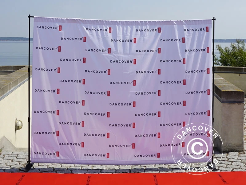 Cette toile de fond élégante et légère est sûre de créer une attention positive lors de tous les types d’événements professionnels comme les foires, les salons professionnels et les lancements de produits. Le support robuste est en aluminium peint par poudrage noir avec une toile de 300×240 cm de polyester DecoTex 205 g/m2. La toile de fond possède un certificat d’incendie DIN 4102-1 B1, ce qui vous permet d’utiliser la toile de fond lors de toutes les foires et autres événements où un certificat d’incendie peut être exigé. Le prix du support de toile de fond comprend l’impression numérique sur un côté de la toile de fond. Vous pouvez utiliser toute la surface de la bannière pour l’impression. Vous pouvez faire imprimer plus ou moins tout ce que vous voulez sur la toile — votre logo, votre texte, vos photos ou diverses illustrations.