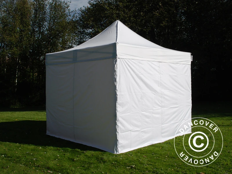 La toile est fabriquée en polyester solide de haute qualité – le toit présente un revêtement en PVC de haute qualité et les parois un revêtement en PU.