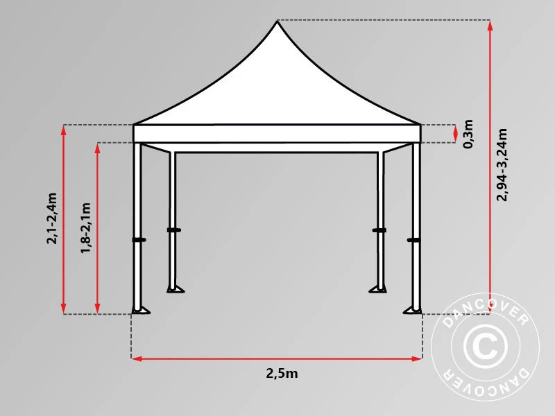 - Quand il pleut, il y a un risque d’accumulation d’eau sur la toiture, ce qui peut causer l’effondrement de la structure. Il en va de votre responsabilité de retirer l’eau du toit. Faites en sorte que la toile de tente soit toujours bien tendue et, le cas échéant, retirer l’eau accumulée sur le toit.