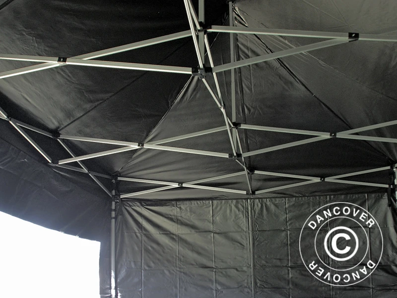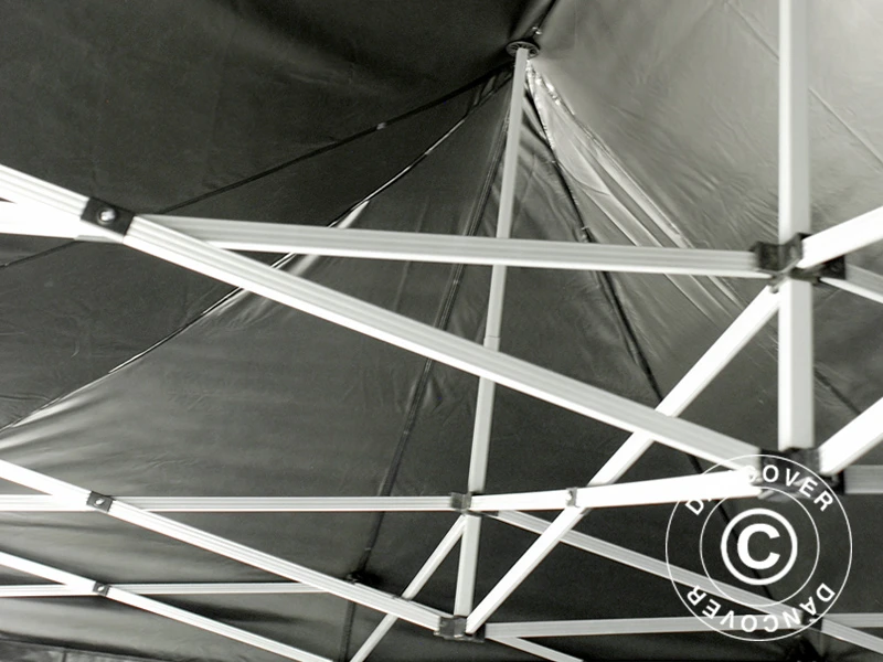 - Quand il pleut, il y a un risque d’accumulation d’eau sur la toiture, ce qui peut causer l’effondrement de la structure. Il en va de votre responsabilité de retirer l’eau du toit. Faites en sorte que la toile de tente soit toujours bien tendue et, le cas échéant, retirer l’eau accumulée sur le toit.