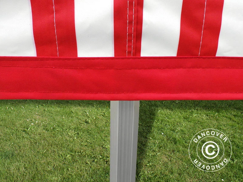 - Quand il pleut, il y a un risque d’accumulation d’eau sur la toiture, ce qui peut causer l’effondrement de la structure. Il en va de votre responsabilité de retirer l’eau du toit. Faites en sorte que la toile de tente soit toujours bien tendue et, le cas échéant, retirer l’eau accumulée sur le toit.