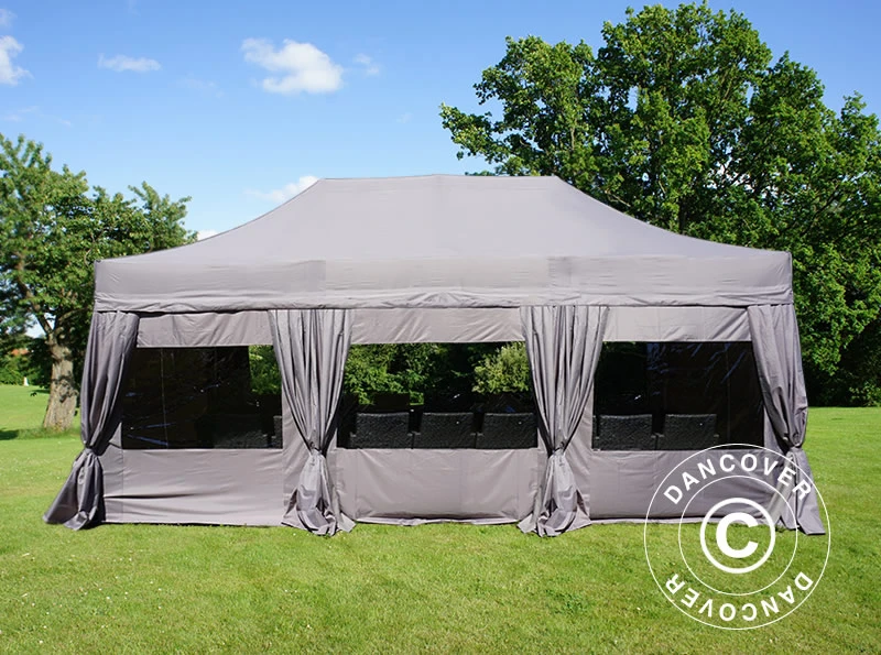 Nous vous recommandons d’opter pour un barreau rectifié, des poids ainsi que pour notre pack sécurité comprenant des sangles et piquets pour tempête capables d’augmenter la stabilité de la tente en cas de météo venteuse. Personnalisez votre FleXtents : choisissez la couleur des parois, optez pour des demi-parois ou des ouvertures panoramiques. Créez des looks incroyables!