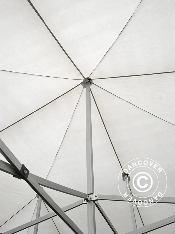 - Quand il pleut, il y a un risque d’accumulation d’eau sur la toiture, ce qui peut causer l’effondrement de la structure. Il en va de votre responsabilité de retirer l’eau du toit. Faites en sorte que la toile de tente soit toujours bien tendue et, le cas échéant, retirer l’eau accumulée sur le toit.