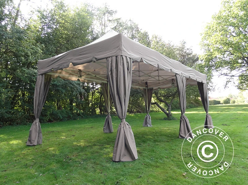 - Quand il pleut, il y a un risque d’accumulation d’eau sur la toiture, ce qui peut causer l’effondrement de la structure. Il en va de votre responsabilité de retirer l’eau du toit. Faites en sorte que la toile de tente soit toujours bien tendue et, le cas échéant, retirer l’eau accumulée sur le toit.