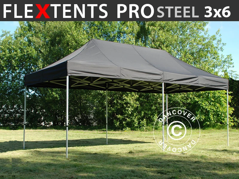 La tente pliante FleXtents PRO Steel est une tente pliante de haute qualité. Elle allie un design élégant et fonctionnel et une qualité professionnelle. FleXtents PRO Steel est extrêmement facile à installer, à transporter et à stocker.
