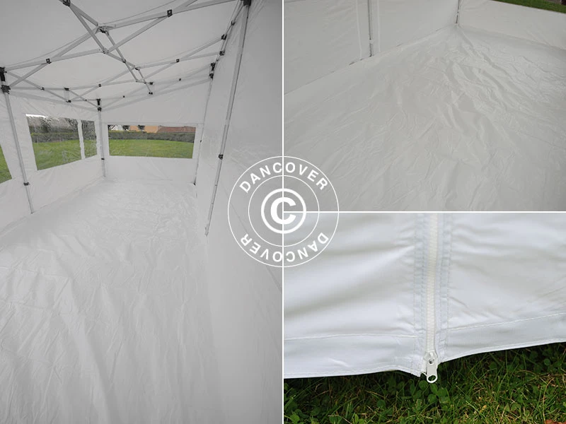 Remarque: Les changements de température et de l’humidité dans l’air peuvent provoquer de la rosée ou de la condensation à l’extérieur et à l’intérieur du chapiteau. Ceci est normal et ne signifie pas que le chapiteau présente une fuite.