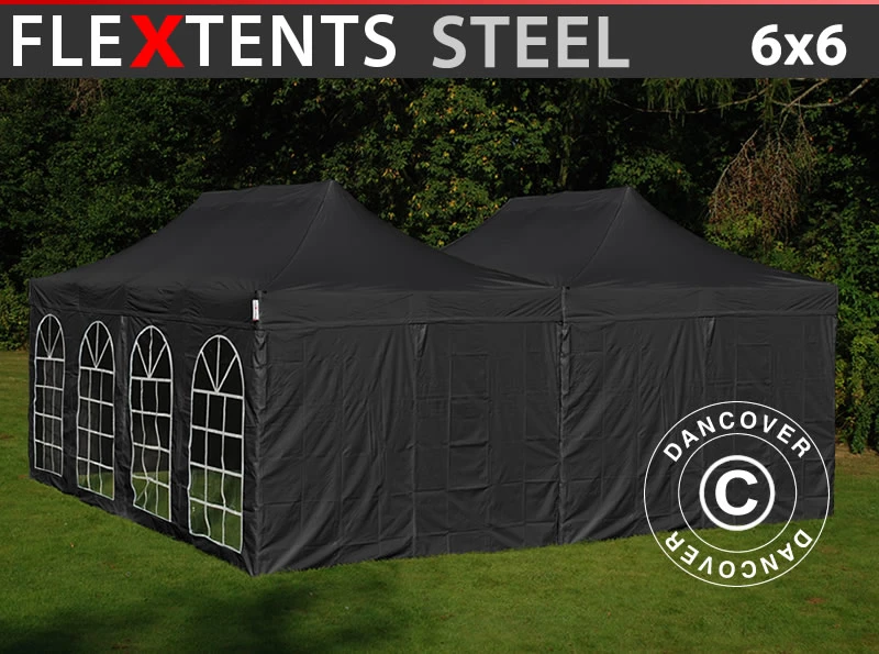 La tente pliante FleXtents Steel est une tente pliante de haute qualité pour toutes sortes de fêtes et d’événements où vous souhaitez profiter d’une tente élégante, qui est beaucoup plus facile à manipuler qu’une tente traditionnelle. Elle allie un design fonctionnel et élégant à une qualité professionnelle. FleXtents Steel est extrêmement facile à installer, connecter, transporter et stocker.