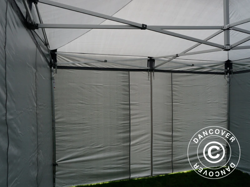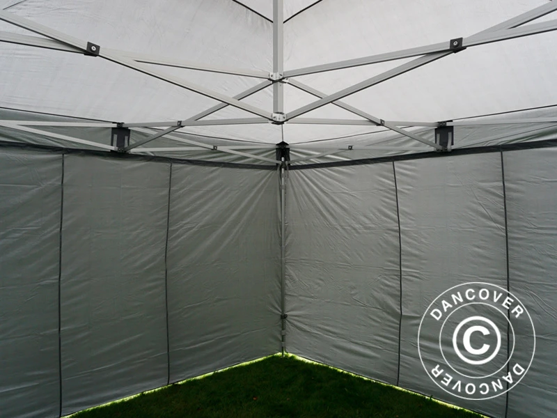Nous vous recommandons d’acheter une barre au sol, des poids et notre pack de sécurité contenant des piquets contre les intempéries pour accroitre la stabilité face au vent. Optez pour des murs latéraux de différentes couleurs, des demi-panneaux ou des murs avec fenêtres panoramiques pour personnaliser votre FleXtents encore plus et parvenir à de nombreux looks plus esthétiques les uns que les autres.