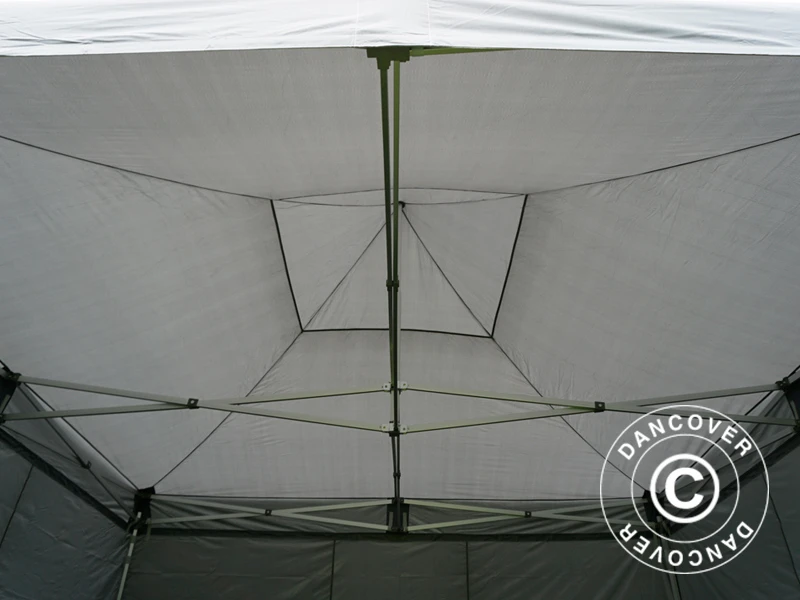 - Quand il pleut, il y a un risque d’accumulation d’eau sur la toiture, ce qui peut causer l’effondrement de la structure. Il en va de votre responsabilité de retirer l’eau du toit. Faites en sorte que la toile de tente soit toujours bien tendue et, le cas échéant, retirer l’eau accumulée sur le toit.