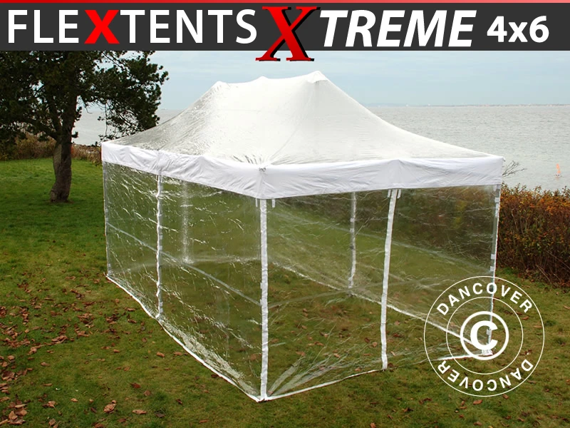 Nous vous recommandons d’acheter une barre au sol, des poids et notre pack de sécurité contenant des piquets contre les intempéries pour accroitre la stabilité face au vent. Optez pour des murs latéraux de différentes couleurs, des demi-panneaux ou des murs avec fenêtres panoramiques pour personnaliser votre FleXtents encore plus et parvenir à de nombreux looks plus esthétiques les uns que les autres.