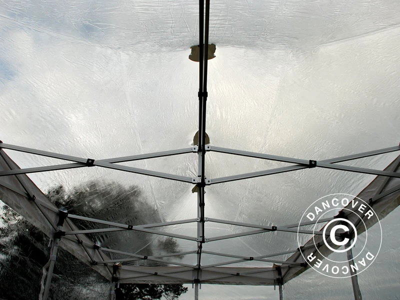 Remarque: Les changements de température et de l’humidité dans l’air peuvent provoquer de la rosée ou de la condensation à l’extérieur et à l’intérieur du chapiteau. Ceci est normal et ne signifie pas que le chapiteau présente une fuite.