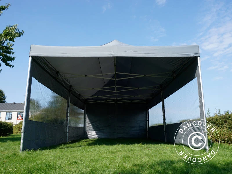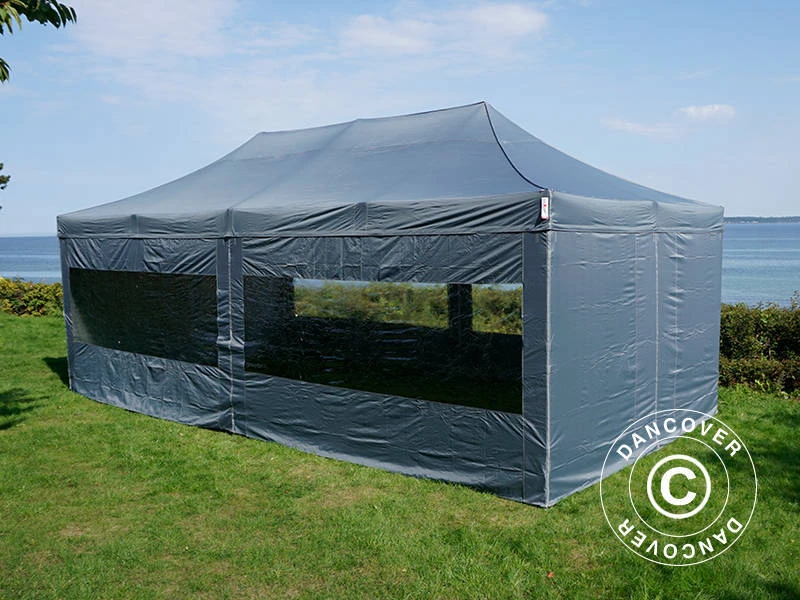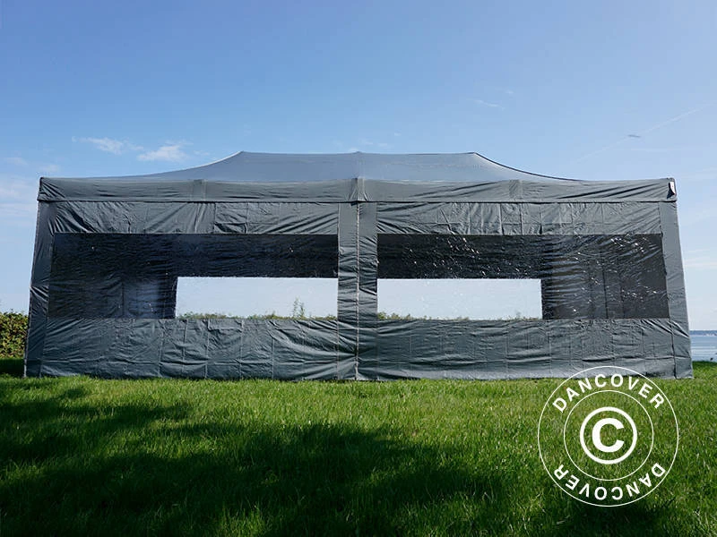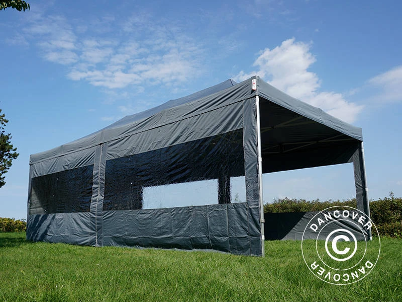 Nous vous recommandons d’acheter une barre au sol, des poids et notre pack de sécurité contenant des piquets contre les intempéries pour accroitre la stabilité face au vent. Optez pour des murs latéraux de différentes couleurs, des demi-panneaux ou des murs avec fenêtres panoramiques pour personnaliser votre FleXtents encore plus et parvenir à de nombreux looks plus esthétiques les uns que les autres.