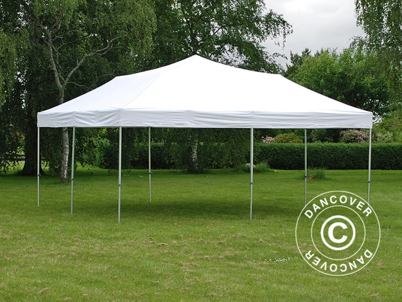 - Quand il pleut, il y a un risque d’accumulation d’eau sur la toiture, ce qui peut causer l’effondrement de la structure. Il en va de votre responsabilité de retirer l’eau du toit. Faites en sorte que la toile de tente soit toujours bien tendue et, le cas échéant, retirer l’eau accumulée sur le toit.