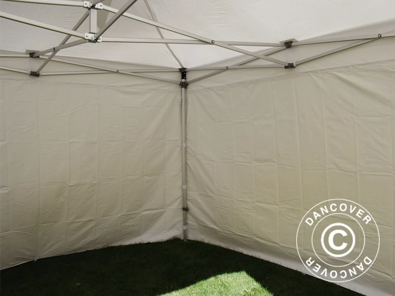 Nous vous recommandons d’acheter une barre au sol, des poids et notre pack de sécurité contenant des piquets contre les intempéries pour accroitre la stabilité face au vent. Optez pour des murs latéraux de différentes couleurs, des demi-panneaux ou des murs avec fenêtres panoramiques pour personnaliser votre FleXtents encore plus et parvenir à de nombreux looks plus esthétiques les uns que les autres.
