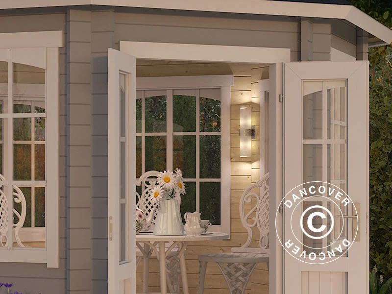Une tonnelle octogonale en bois massif nordique sélectionné de 44 mm de qualité. Comme le bois pousse lentement dans les régions les plus froides d’Europe, votre tonnelle est fabriquée dans un matériau très stable, robuste et durable, qui durera longtemps, surtout si vous en prenez soin. L’élégante tonnelle en bois avec de grandes fenêtres et une double porte deviendra bientôt le point de rencontre naturel dans votre jardin. Utilisez-la pour la détente et la contemplation, pour le travail ou pour recevoir vos amis et votre famille.